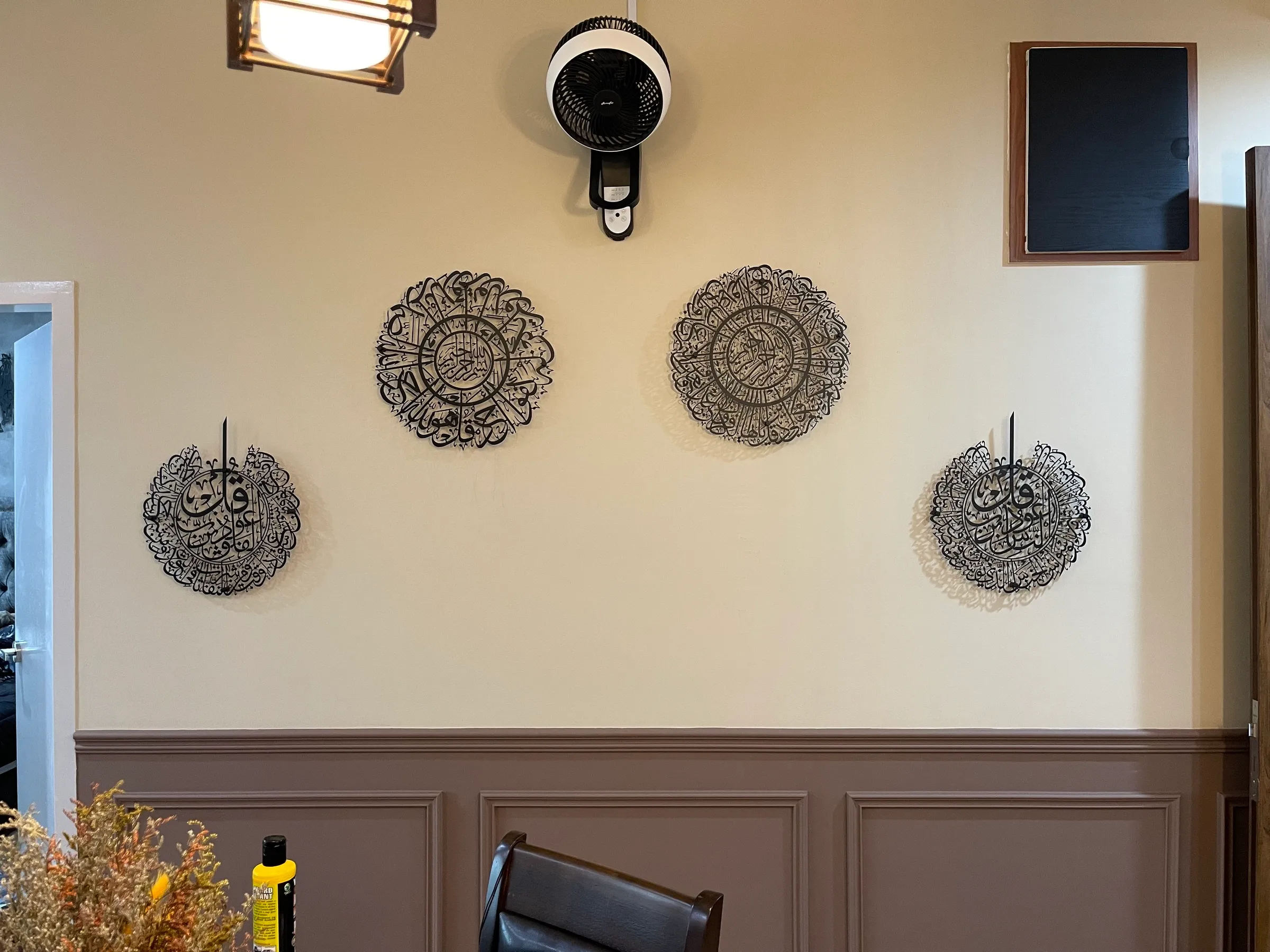 You can place this 4 Quls Round Shape Wall Art in your living room, majlis, bedroom, or prayer area. It becomes a focal point while reminding you of Allah’s protection and guidance every day.