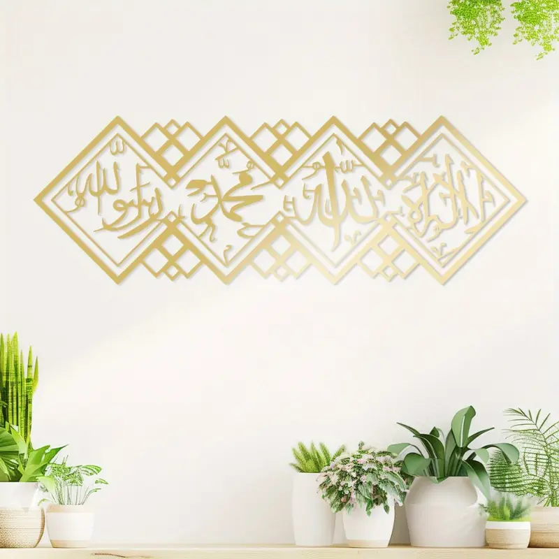 - Design:Â This gorgeous First Kalma (tayyab) will add the perfect touch to your home. Embrace the beautiful design of the moon and star.