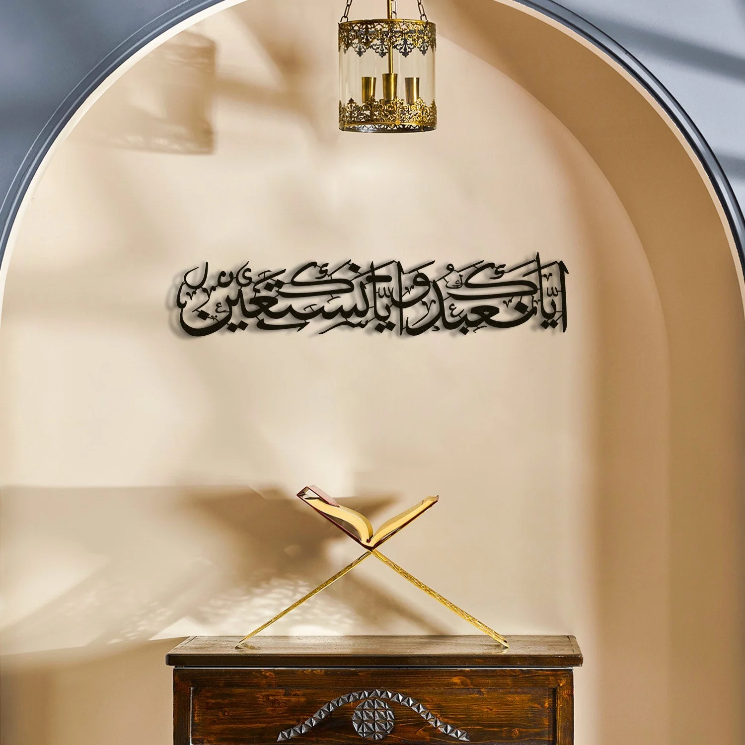 Add a timeless expression of faith, elegance, and premium luxury to your home with the IWAS Premium Luxury “Iyāka Na‘budu wa Iyāka Nasta‘īn” Islamic Wall Art — a masterpiece designed to elevate both your décor and your spiritual atmosphere.