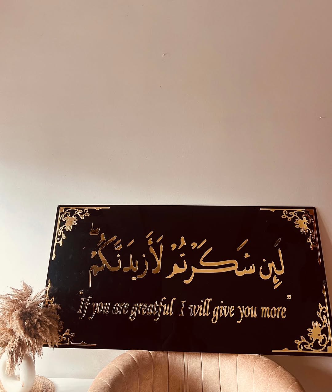 You can place this لَئِن شَكَرۡتُمۡ لَأَزِيدَنَّكُمۡۖ Wall Art in your living room, majlis, bedroom, or prayer area. It becomes a focal point while reminding you of Allah’s blessings and the importance of gratitude every day.