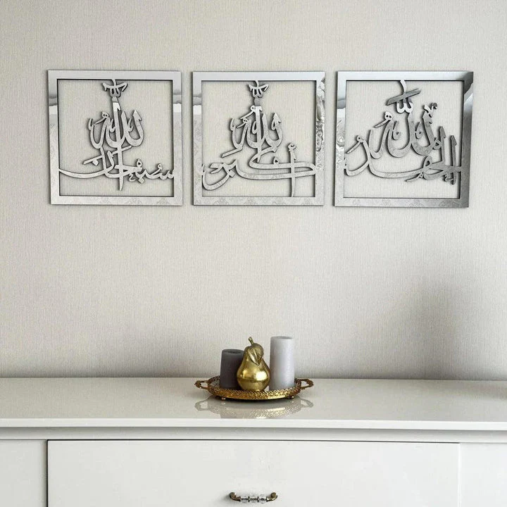 Experience the serenity and gratitude of faith with our Subhanallah Alhamdulillah AllahuAkbar Set Islamic Wall Art Decor, a trio that resonates with the core of Islamic worship.