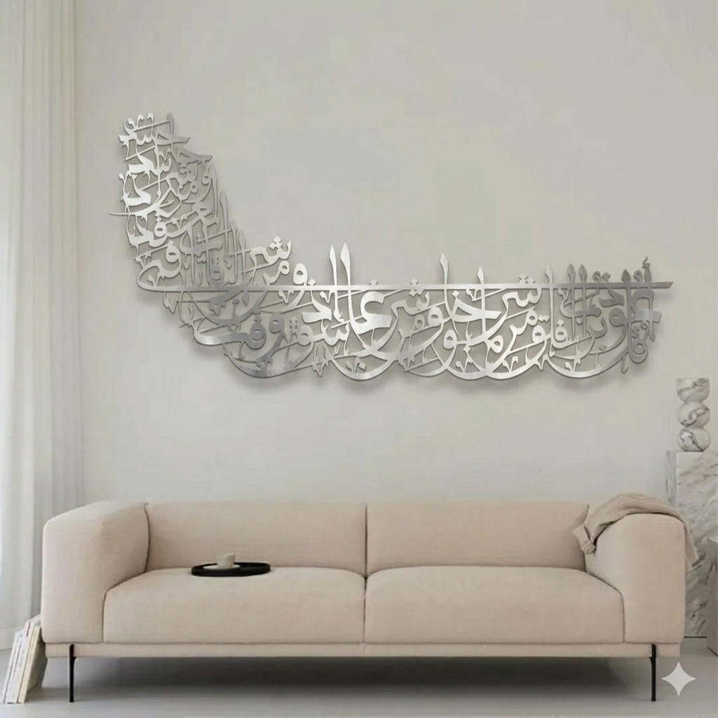 This piece differs from all other Islamic wall art. Moreover, the unique crescent design grabs attention instantly. Because of this, customers in Dubai always love it.