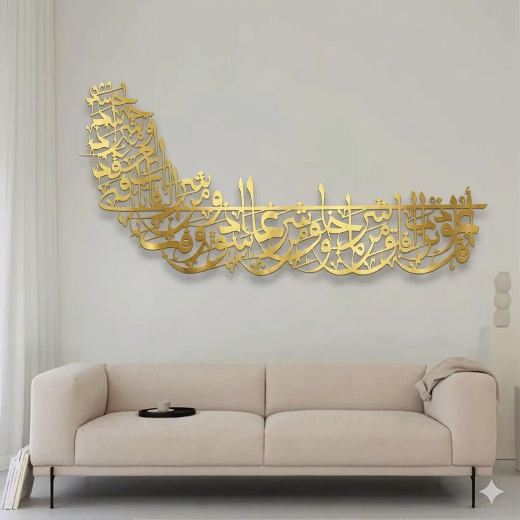 IWAS Premium Surah Al-Falaq Wall Art UAE — luxury Islamic calligraphy in a stunning crescent design, exclusively crafted for the most discerning homes in Dubai & Abu Dhabi. Free delivery across UAE 🚚