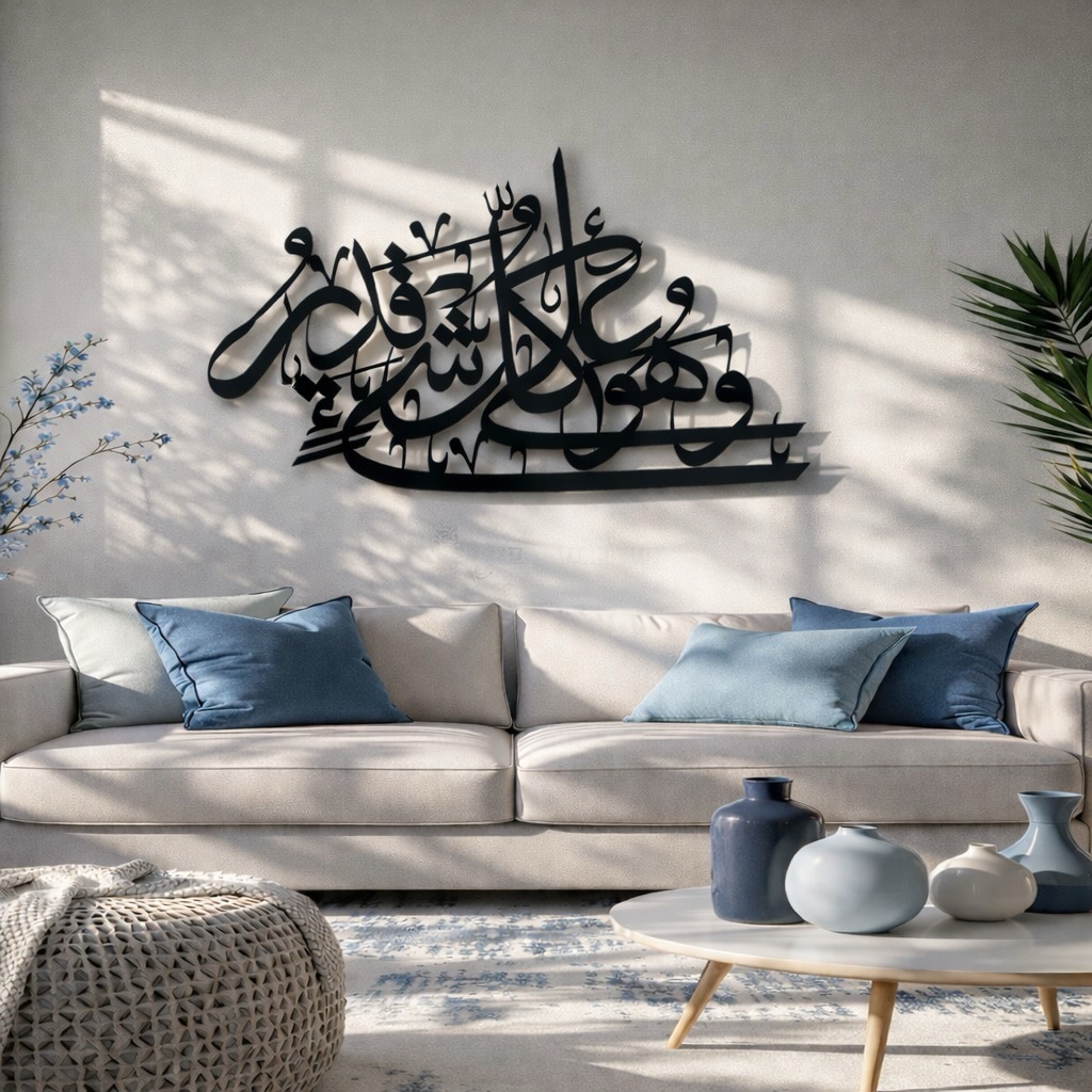 Wa Huwa Ala Kulli Shay’in Qadeer وَهُوَ عَلَى كُلِّ شَيْءٍ قَدِيرٌ Wall Art UAE | Premium Luxury Islamic Calligraphy — IWAS
