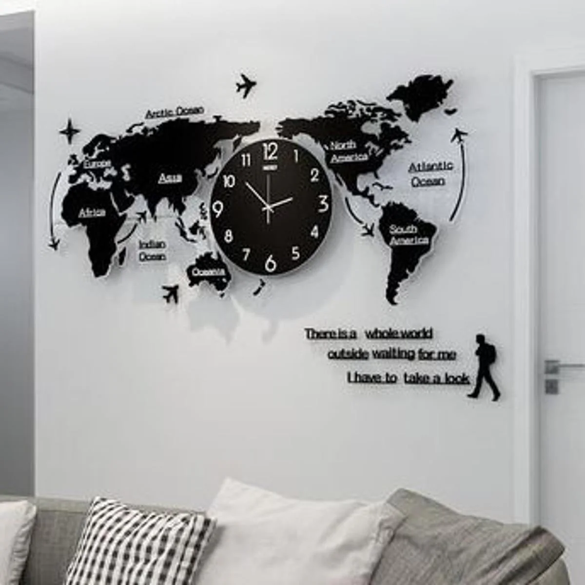 High-quality products: Creative Good Quality World Map Unique Acrylic Wall Decoration Hanging Clock Wall Clock for Home Living Room Office.